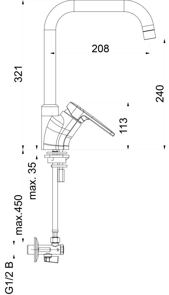 Der Infinity i23 Sanitär Küchenmischer mit Eckventil besticht durch sein modernes Design und seine hohe Qualität. Mit seiner glänzenden Chromoberfläche und dem seitlichen Hebelgriff passt er perfekt in jede Küche. Diese Armatur ist für Hochdrucksysteme konzipiert und besteht aus robustem Messing.